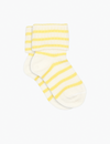 A striped update to the classic Danish rib sock, these ankle socks are sure to become a go-to item for your baby or toddler's wardrobe. Knit from the softest bamboo/cotton yarn blend, these socks are designed to stay put with a wide fold with comfort and fit in mind. These socks run small, we recommend buying one size up for longer wear.