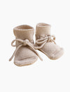 Meet the bootie of all booties. Designed and knitted in Belgium from 100% extra fine Italian merino wool. These booties have the perfect fit over the heel and the laces keep the booties tight and on the tiniest of feet. Each pair comes individually packed in their own duster bag. These are hands down the perfect gift for a new baby and are fresh from HVID's "barn atelier" in Belgium.