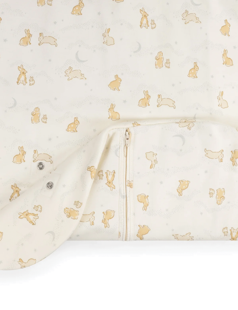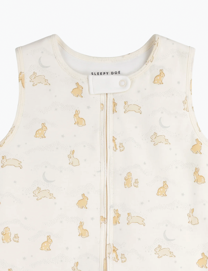 Sleepy Doe’s limited run of baby sleeping bags in their sweetest bunny print. Unzips from the bottom and has one snap closure at the top to protect the zipper. Features snaps at the back to make the length adjustable. Fits up to 12 months.