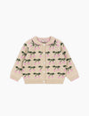 The Belou Knit Cardigan in a beautiful cream with an allover pink cherry knit pattern. This sweater is super soft and warm and is made from a chunky wool blend fabric. Designed with a rounded collar, rib hems, and mother of pearl buttons in front.