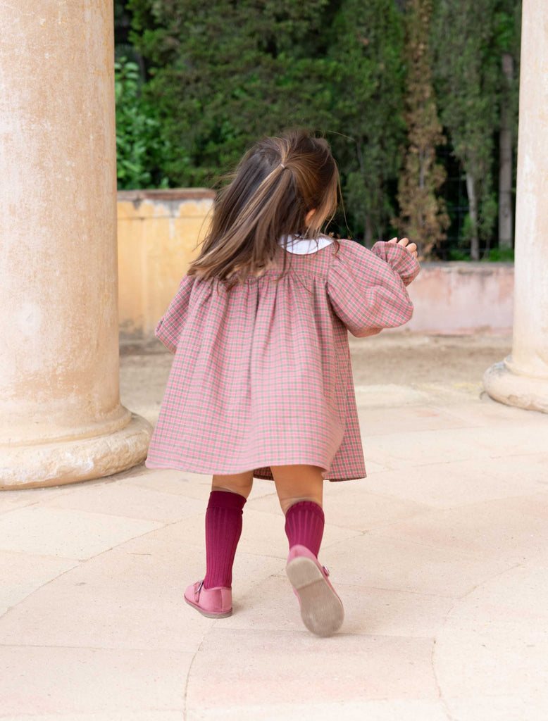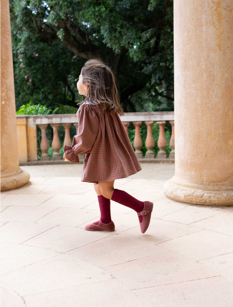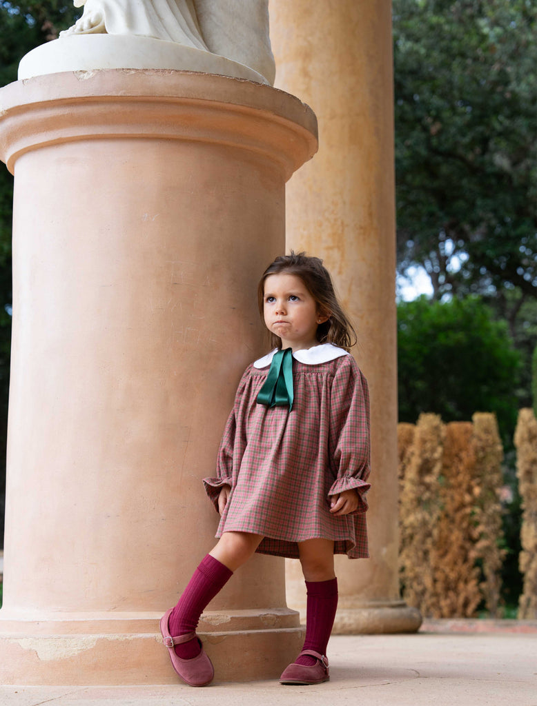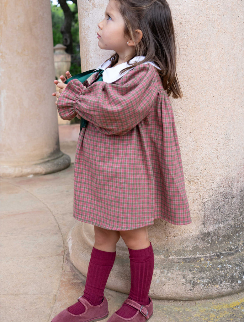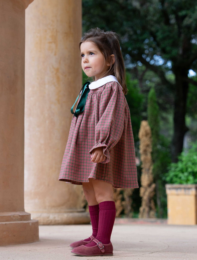 The White Rabbit Dress by Carlota Suip is part of the brand’s Alice in Wonderland–inspired winter collection — a nostalgic nod to timeless storybook style. Vintage-inspired dress in soft 100% cotton flannel with a powdery red and green check. Fully lined through the yoke and skirt in 100% cotton for comfort and structure. Features puffed sleeves with delicate frilled cuffs and a crisp white Peter Pan collar in 300-thread count cotton twill. A forest green satin bow ties at the neckline, adding a refined touch. Closes at the back with a teardrop opening and wooden button. Includes 4 cm of extra hem to adjust as your little one grows.