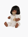 This sweet baby doll features an adorable bob haircut with tiny bangs, dressed in a cozy organic pointelle pajama set for extra snuggles. Her removable pacifier is perfect for comforting play, and her special bottle can be filled with real water — she’ll drink it and even go potty afterward!