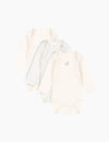 This set features three cozy bodysuits crafted from soft organic rib cotton with long sleeves. Designed with stretchy rib fabric and an envelope neckline, these bodysuits slide on and off with ease. Plus, snap buttons between the legs make diaper changes a breeze! 3-pack includes: one striped bodysuit and two solid cream bodysuits all with an adorable front graphic of kittens sipping from a plate.