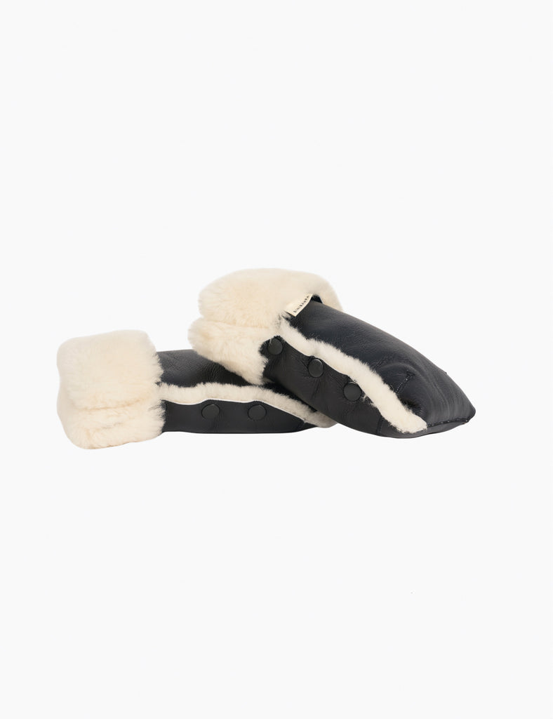 Coated Sheepskin Buggy Mittens in Noir + Milk