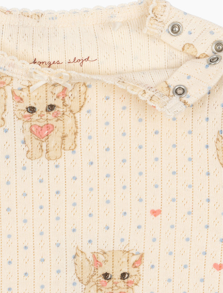 Our favorite pointelle fabric is back this season in a very cute way! The Minnie Bodysuit is a great base layer that has sweetest design details including picot trim around the neck and sleeves. Snap buttons at the shoulder and bottom for easy changes!