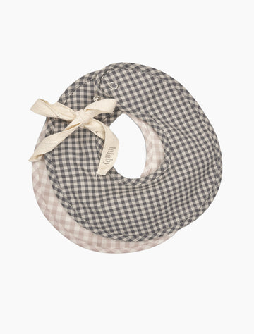 Cute little bibs for your baby with terry cotton at the back and two snap buttons for easy closure and fitting. This 2-pack includes one Bibi Bib in Beige Gingham and one Bibi Bib in Forest Check.