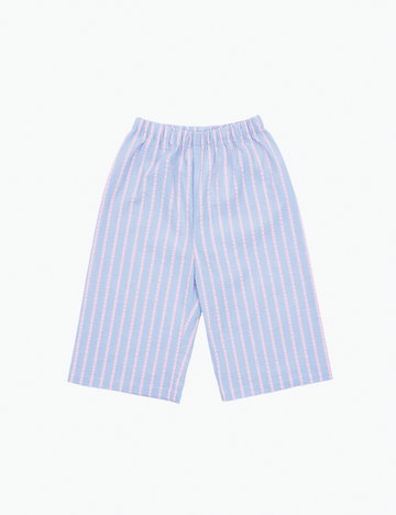 Crafted from premium Portuguese cotton, the Madeleine Pants features delicate blue and pink stripes, cut in a wideleg fit and elasticated waistband for an easy wear — a romantic, eclectic design made to effortlessly pair with both prints and classic solids.