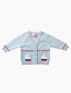 Cashmere Boat Motif Cardigan in Spa Blue/Swan White