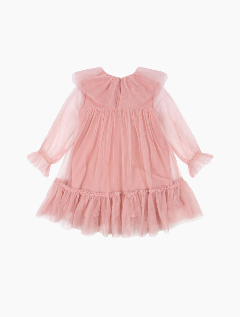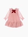 Dress to impress in the Bow Dress! This stunning dress features a charming collar and decorative bow that adds an extra touch of elegance. Made with tulle and long sleeves, it's gorgeous and perfect for any holiday occasion.