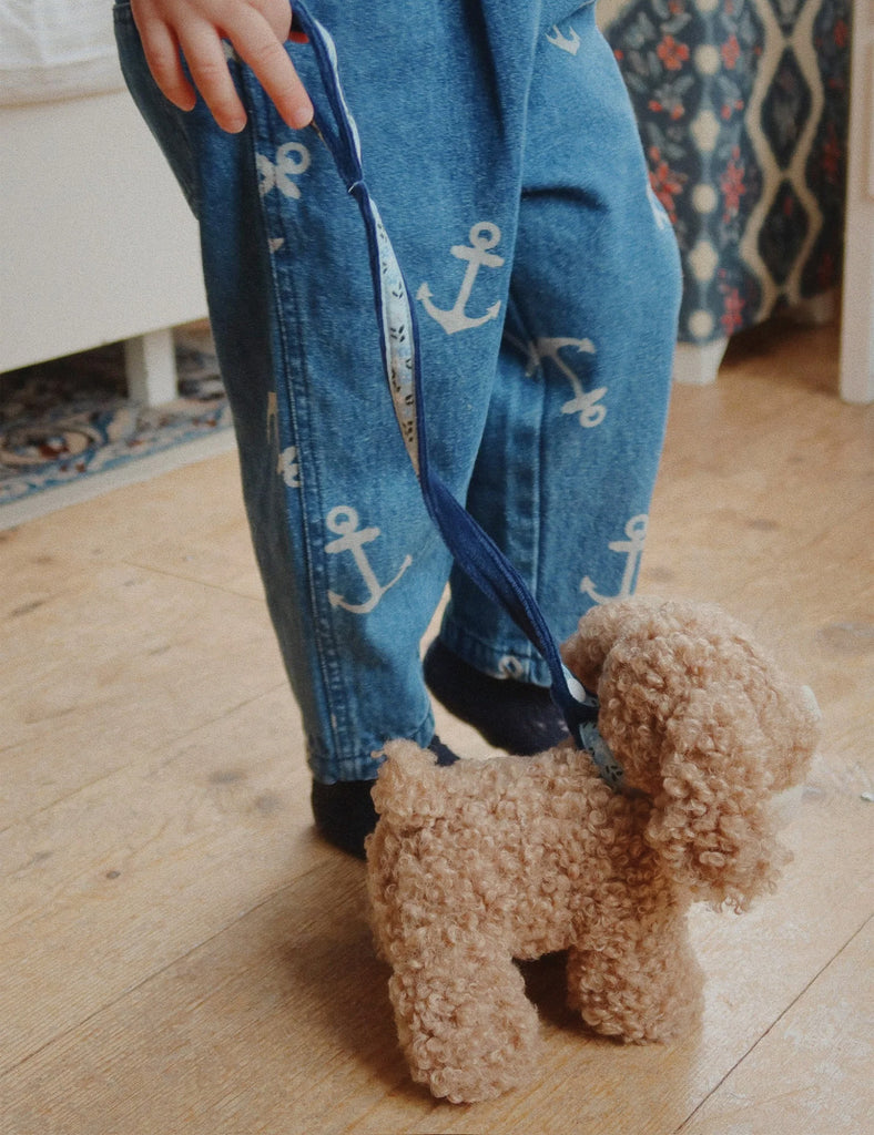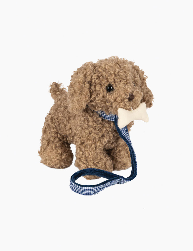 Soft, cuddly, and ready for adventure — this plush puppy is a little one’s new best friend. With his curly doodle fur, and favorite bone in tow, he’s perfect for endless snuggles and pretend play. Complete with a leash and matching gingham carrier, he’s always dressed to go wherever your little one does.