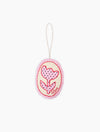 The Vera Ornament is crafted from leftover fabric and off-white canvas, softly padded for a gentle, heirloom feel. Adorned with a contrasting flower appliqué made from reclaimed textiles and finished with delicate, hand-style embroidery, each piece highlights thoughtful craftsmanship. A slender gold hanging string completes the design, adding a playful yet refined touch to your spring décor.