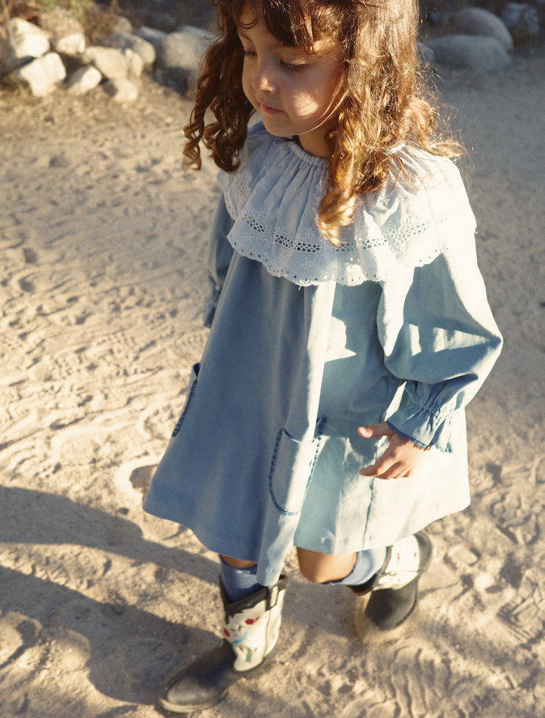 Designed by Irene Villar and lovingly made in Los Angeles, each piece is a playful, artistic re-imagination of traditional heirloom clothing. Rooted in vintage-inspired silhouettes and delicate craftsmanship, the collection blends nostalgia with a whimsical, contemporary spirit. Created for little dreamers, adventurers, and free spirits, these garments feel like treasured keepsakes—timeless yet fresh, made to be worn, loved, and handed down.