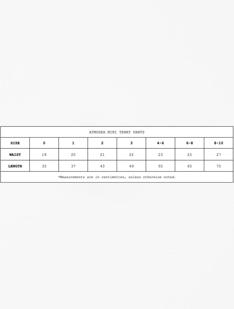 Inspired by the groove of the 70s- the Mini Terry Pant is made of a mid-weight 100% cotton terry, with two sporty stripes on each side, an elasticated waist with an adjustable drawstring, and a back pocket. We think these are the perfect wear every day, year-round pant.