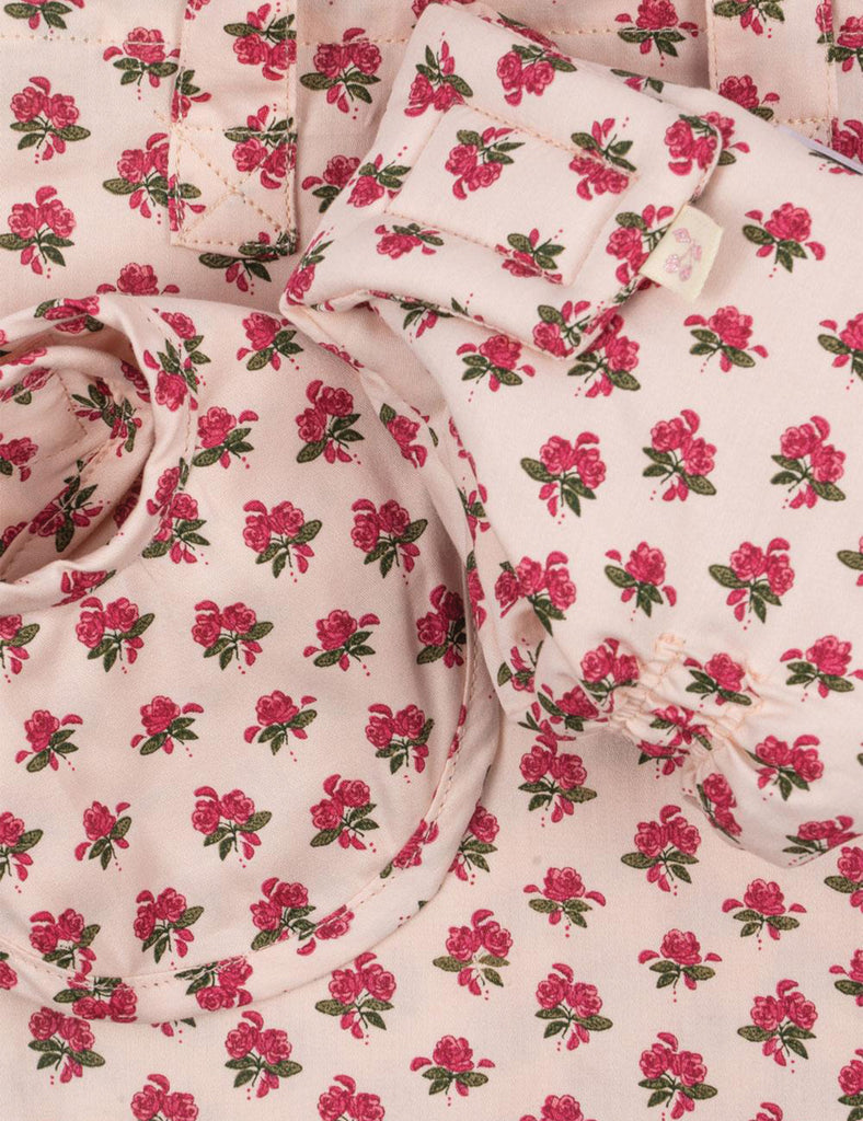 A complete nursery set for your child's favorite doll. Includes a bib, a diaper with velcro closure, a soft cotton cloth — and a small tote bag to keep all items in.