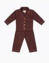 The most classic set of PJ's from Nights By Wilder. The Lennon Set is a unisex pyjama set, with a one pocket button down style shirt and elasticated waist trousers for ease and comfort. Wooden button closures. Available in a maroon stripe with pink piping trim all in a soft cotton.