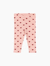 The Minnie Legging is made from the softest organic cotton pointelle. A great base layer that has sweetest design details including picot trim at the hem, a soft elasticated waistband, and an allover mini red heart print.