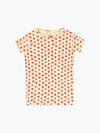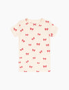 The Minnie Tee is made from the softest organic cotton pointelle. A great short sleeve base layer that has sweetest design details including picot trim around the neck and sleeves, a satin pink bow at the front chest, an allover rose print and a soft cream base. Made from 100% organic cotton.