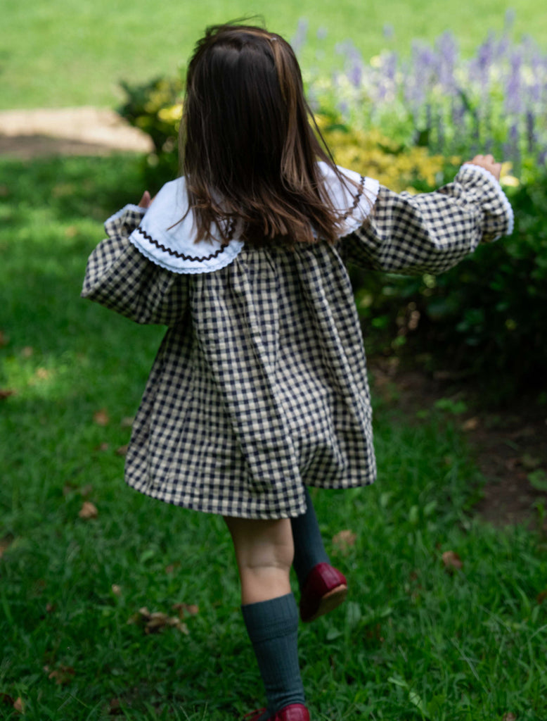 Queen of Hearts Dress in Cream/Charcoal Gingham