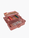 The perfect little creative set that works for both storage and decoration. This handy creative tool box includes: 10 coloring pencils, 6 markers, 4 stamps, 2 sheets of stickers, 1 sheet of gems (not to use on the body), 1 notepad, 1 A5 coloring book, 1 sharpener, 1 ruler and 1 scissor.