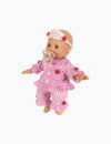 Teddy is the sweetest little doll dressed in a soft pajama set and comes with an adorable little bunny stuffy. Teddy is made with a soft body that allows you to position her like a real baby, and a head that can turn to both sides for a more lifelike experience.