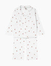 Introducing the Kids Baggy Blouse PJ Set in Cherries. This playful design features an allover classic cherry print against a soft, blue background. This set is crafted from 100% organic cotton, in a supremely soft interlock fabric that's easy to wash and has a relaxed, comfy fit!