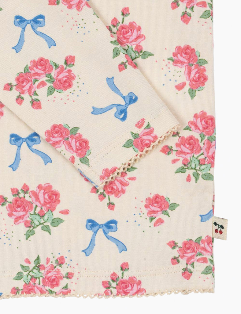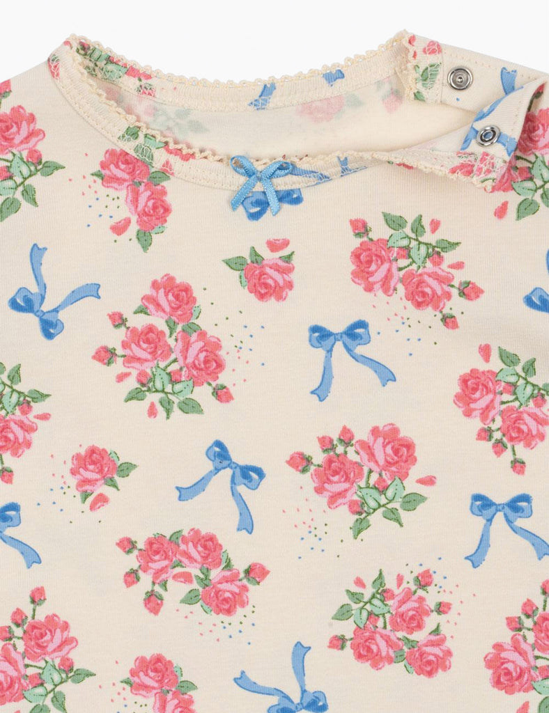 New for Fall — meet the sweetest bella rosita print! This easy top for babies and toddlers is made in a super soft organic cotton jersey fabric with a hint of stretch and sweet lace trim around the neck and sleeves.
