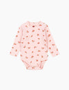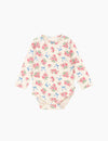 New for Fall — meet the sweetest pink flower and blue bow print! This soft long-sleeved bodysuit for babies features extra room for that cute diaper and snap buttons at the bottom for an easy change.