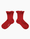 Lili Lace Trim Ribbed Ankle Socks in Coquelicot