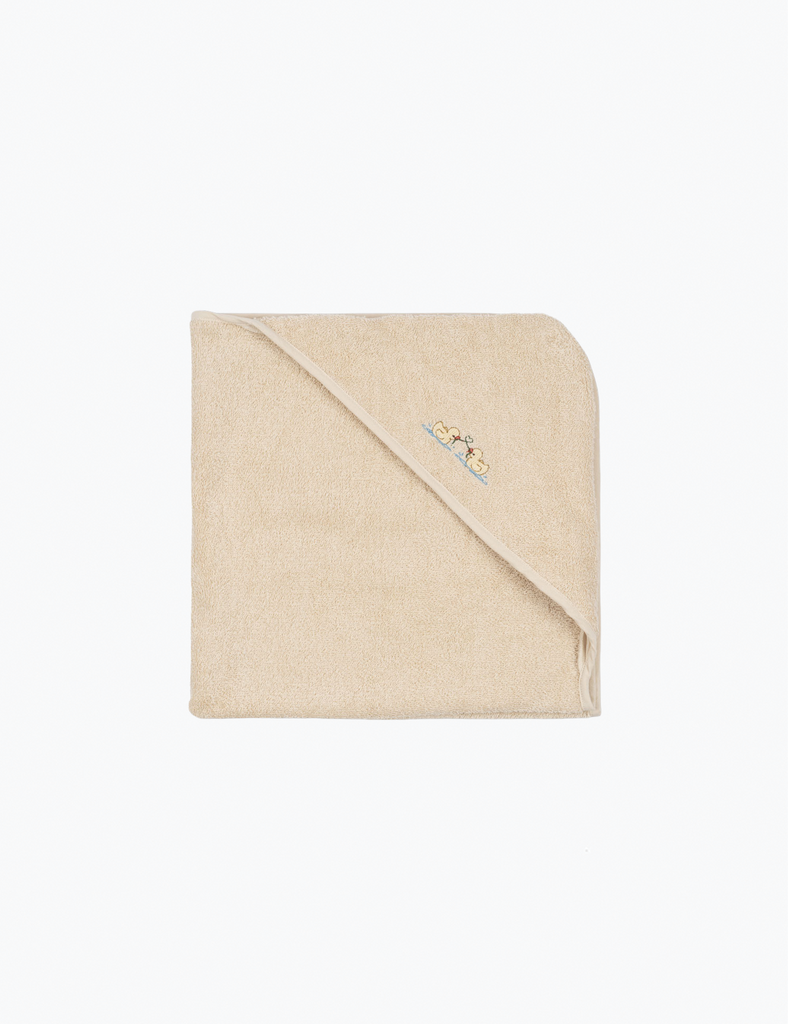 Woven from a heavy organic 100% terry cotton, this soft baby towel is the perfect soothing post-bath ritual for your little one. This baby towel has a convenient hood to for your baby to wear and features two little ducks and a heart that interlocks the two.