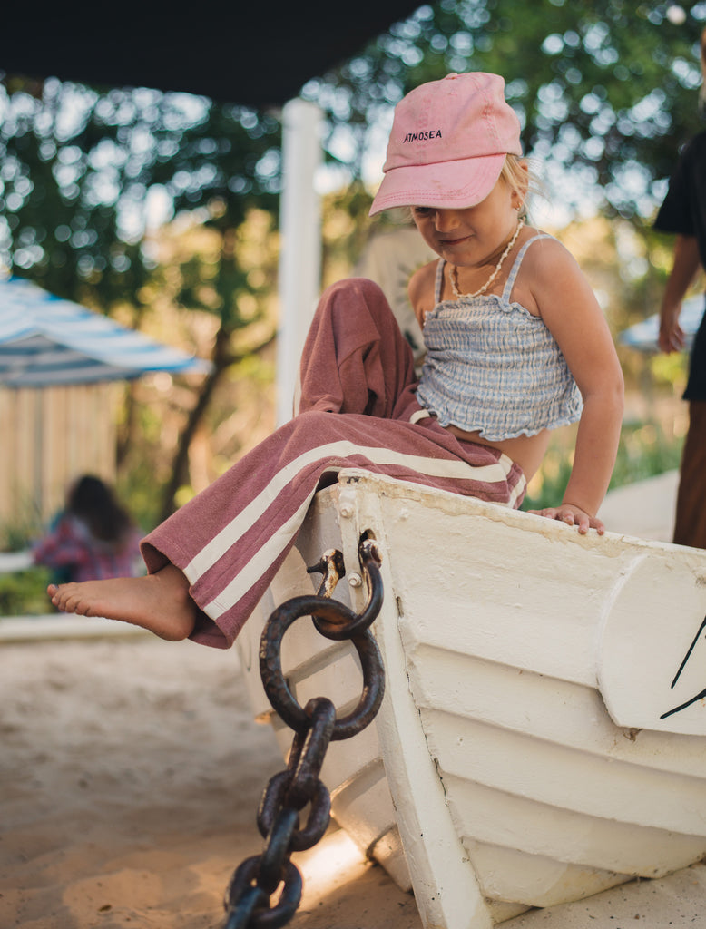 Inspired by the groove of the 70s- the Mini Terry Pant is made of a mid-weight 100% cotton terry, with two sporty stripes on each side, an elasticated waist with an adjustable drawstring, and a back pocket. We think these are the perfect wear every day, year-round pant.
